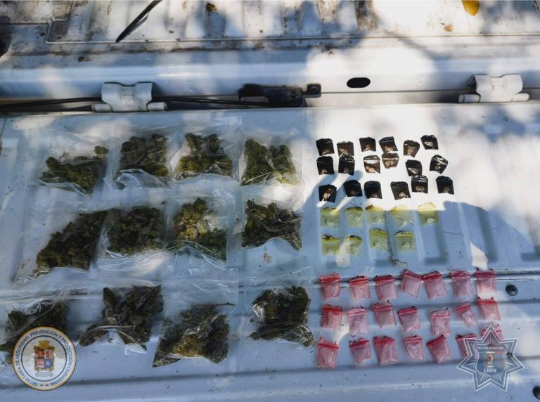 En la colonia El Cortijo, fue detenido Jorge Armando “N” en posesión de 62 envoltorios de piedra base y 16 bolsas de marihuana. La detención se derivó de la proximidad en la zona; al notar la presencia policial intentó huir, pero fue alcanzado.