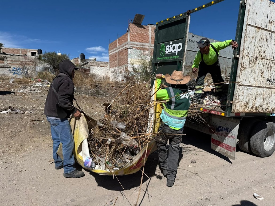 León, Guanajuato. A 01 de febrero de 2026. En atención directa a las denuncias realizadas por la ciudadanía, el Sistema Integral de Aseo Público (SIAP) llevó a cabo una nueva jornada de limpieza y saneamiento en la colonia Rizos de la Joya, con el objetivo de erradicar puntos críticos de acumulación de residuos y mejorar el entorno urbano.